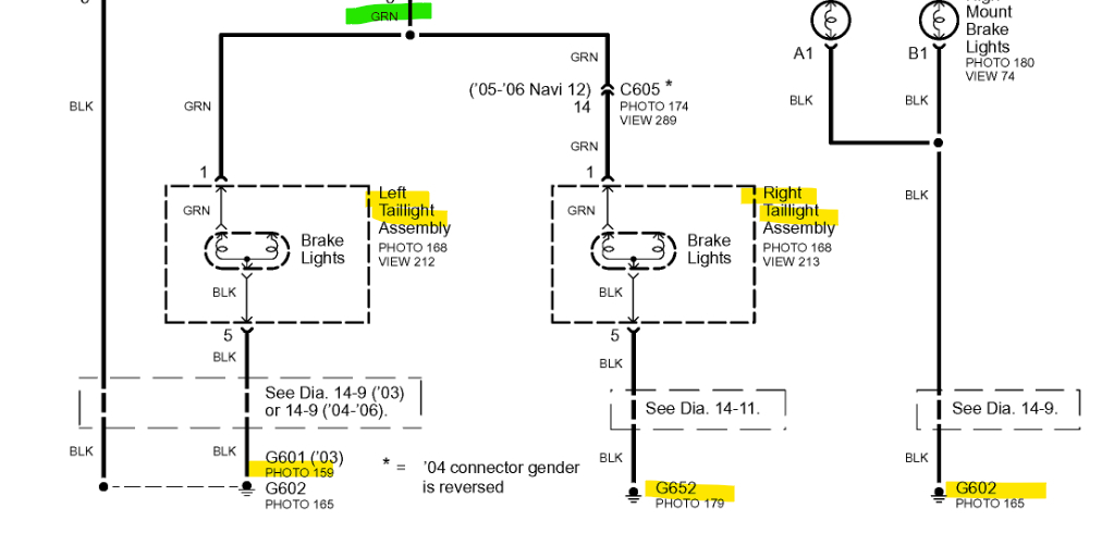 On diagram five there are two ground wires for the right and left bulbs, I have the locations of those grounds if they are needed. And any questions just ask.