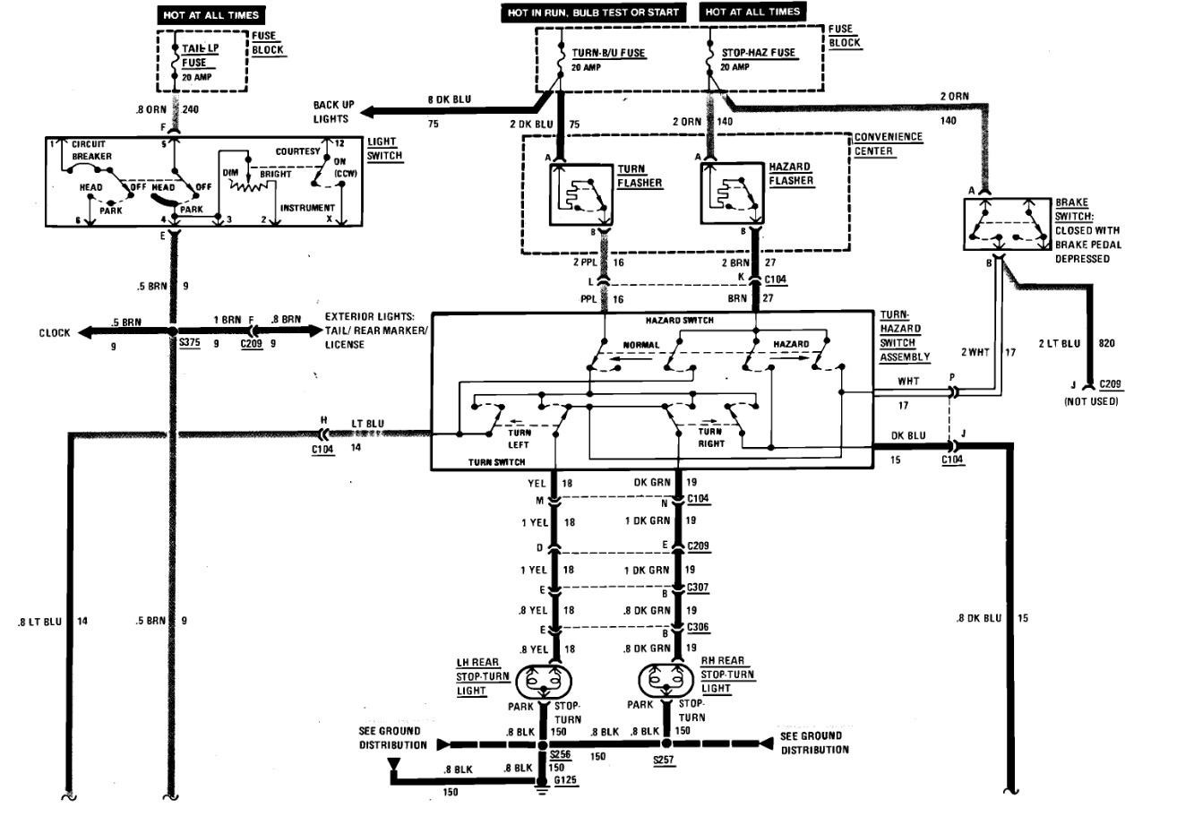 Wow, an 87, those use a box standard GM wiring system. Brown are the marker/plate and parking lamps. Light Green are the reverse lights. Yellow is Left Turn/Brake and Dark Green is Right Turn/Brake. Black is grounding for all lights.