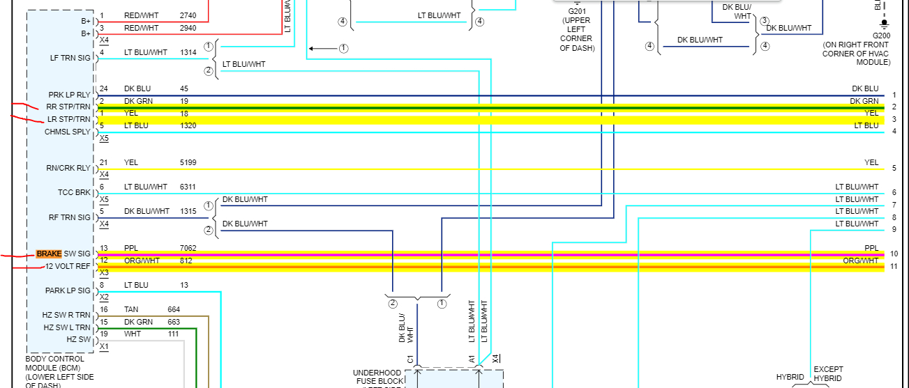 Looking through the wiring schematic, I noted the circuit is not a traditional one. What should be a very simple circuit runs throughout 3 pages. LOL Power is supplied via the body control module. See pic below