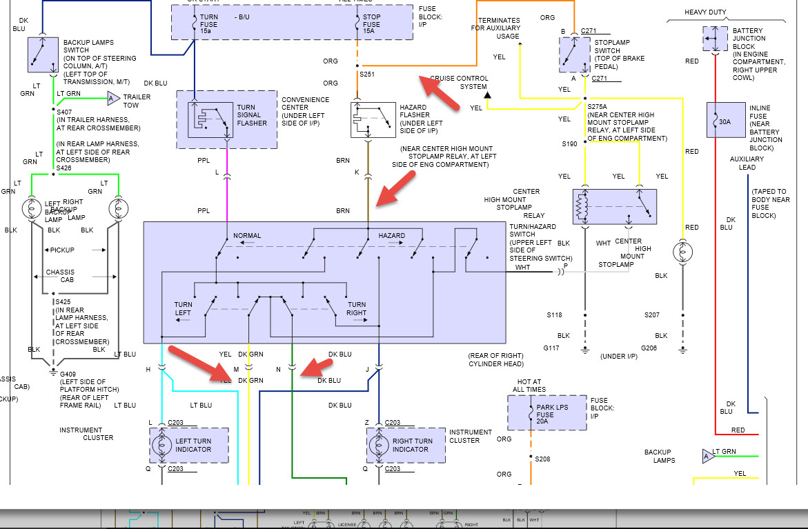 Brake lights work when tilt wheel is in up position but quit when tilt wheel is in down position. However brake lights on aftermarket truck cap work no matter where tilt wheel is positioned...