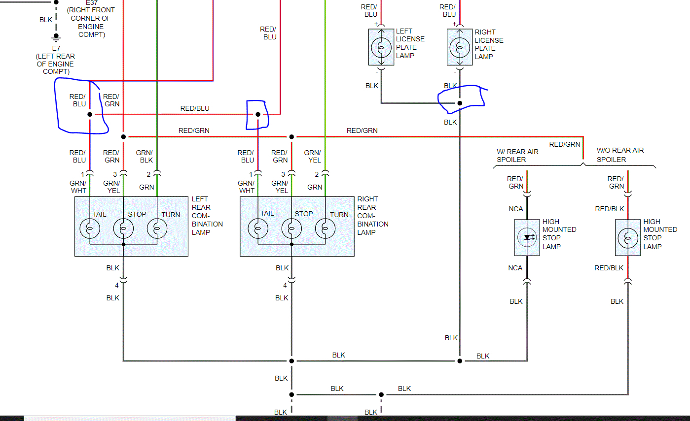 A couple of days ago I notice the top brake light staying on while not pressing the brakes only with the headlights on. when they off all the brake lights work fine. also the two bottom brake lights go off when I hit the brakes. I replaced the battery ground cable that was broken and a few months ago and the brake switch. before I notice the top brake light staying on and acting like one of the bottom ones I already had one on the bottom brake lights going off when hitting the brakes while headlights are on. Please help. I have also check all the fuses, I have follow all the wiring from the trunk to the fuse box and everything seems fine.