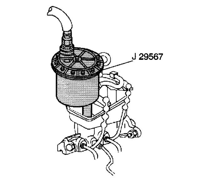 Note: It is very important that the correct master cylinder bleeder adapter be used to avoid possible damage to the master cylinder reservoir.