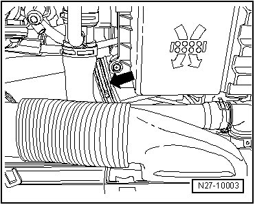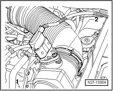 Disconnect connection - 1 - and remove rear spring hose clamp from intake hose.