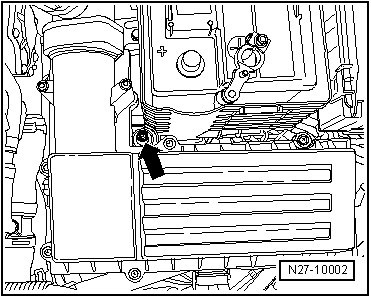 Remove bolt from air filter housing - arrow -.