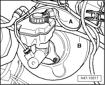 Pull off supply hose - B - for clutch master cylinder.