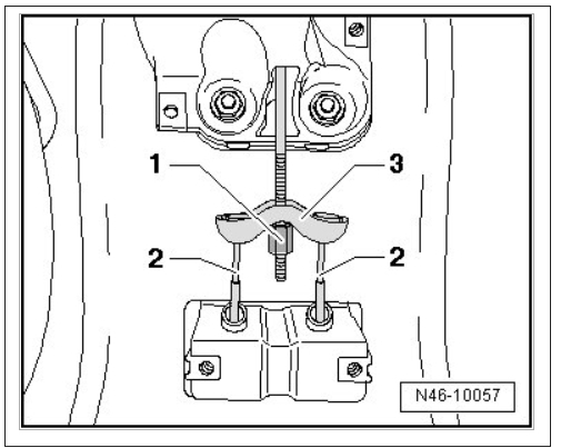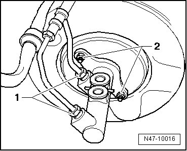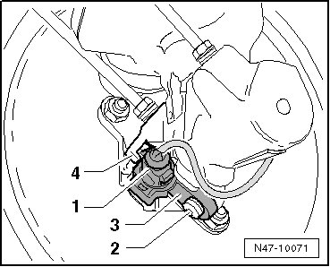 Remove the brake lines - 1 - on master brake cylinder, seal brake lines using Sealing plugs (1H0 698 311 A).