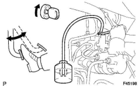 (f) Bleed the air from the pressure reduction line according to "Step 3: Decrease" on the Techstream display.