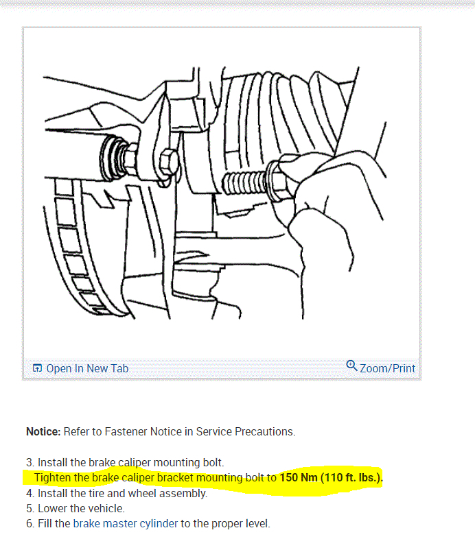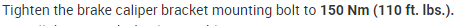 I am going to change the front brakes and rotors on my vehicle listed above but don't know the torque specs for the caliper itself and the mounting bracket. Can you please tell me the torque specs for all brake calipers and all mounting brackets? Thanks in advance