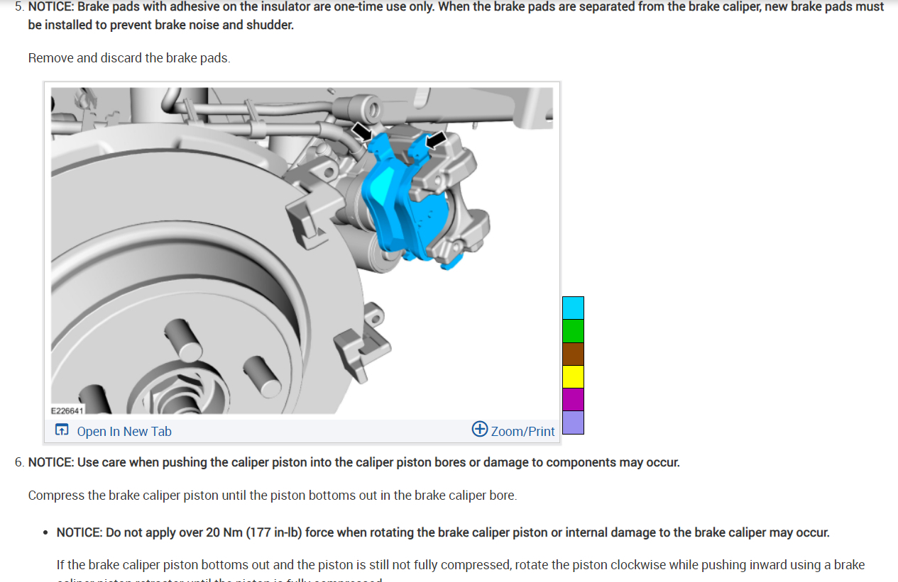 NOTICE: Do not apply over 20 Nm (177 in-lb) force when rotating the brake caliper piston or internal damage to the brake caliper may occur.