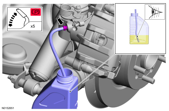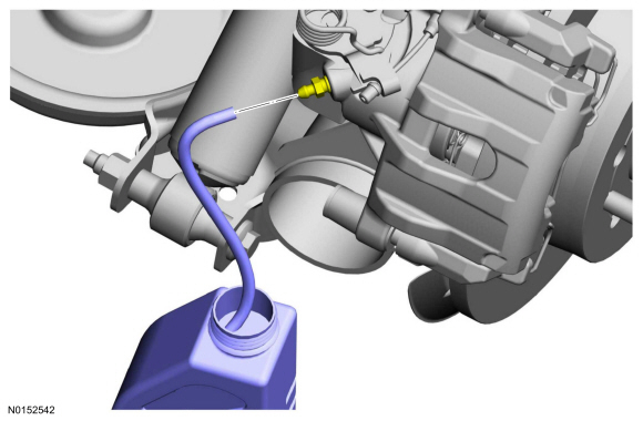 NOTE: Due to the complexity of the fluid path within the rear integral parking brake calipers, it is necessary to press and release the parking brake during the bleed procedure.