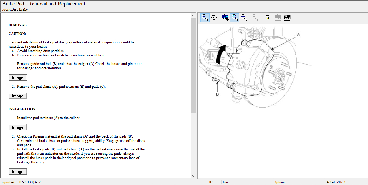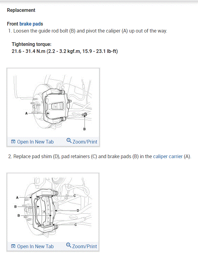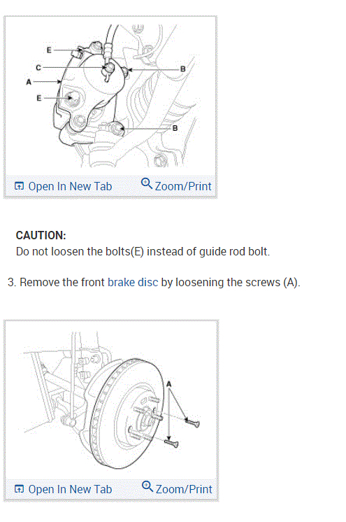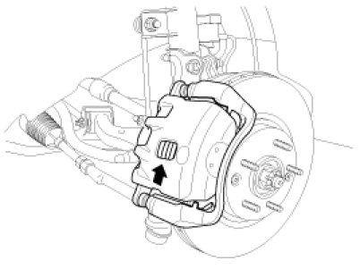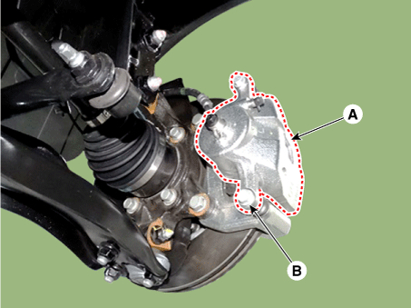 Loosen the guide rod bolt (B) and then remove the caliper body (A).