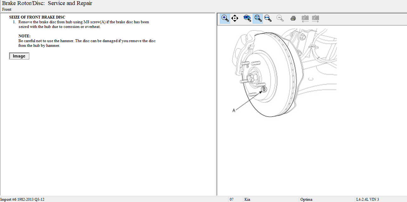 Close the valve (A) of the SST and disconnect the air hose (B); then, open the valve again to get the rest of air out and remove the SST from the caliper.