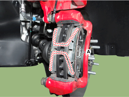 Loosen the brake hose bolts (A) and then disconnect the hose.