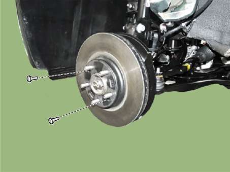 Be careful not to damage the hub bolts when removing the front wheel & tire.