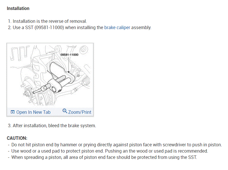Using the SST (09581-2T100), install the brake caliper assembly.