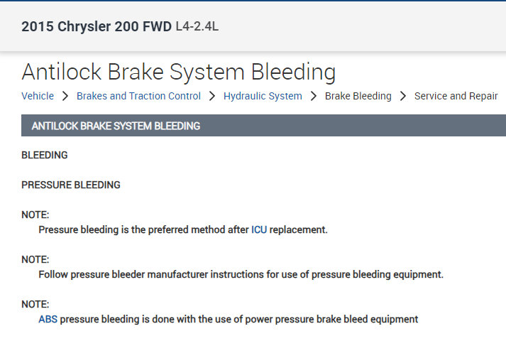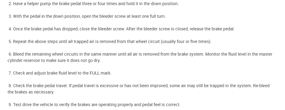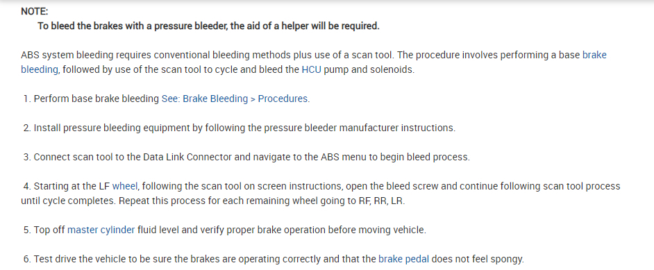 If you complete the base bleed and the brake pedal is soft or doesn't feel right, then the ABS bleed procedure will need to be performed. You will need a scan tool and pressure bleeder for this. That is something most people don't own. However, I did add the directions. See pics 5 - 6.