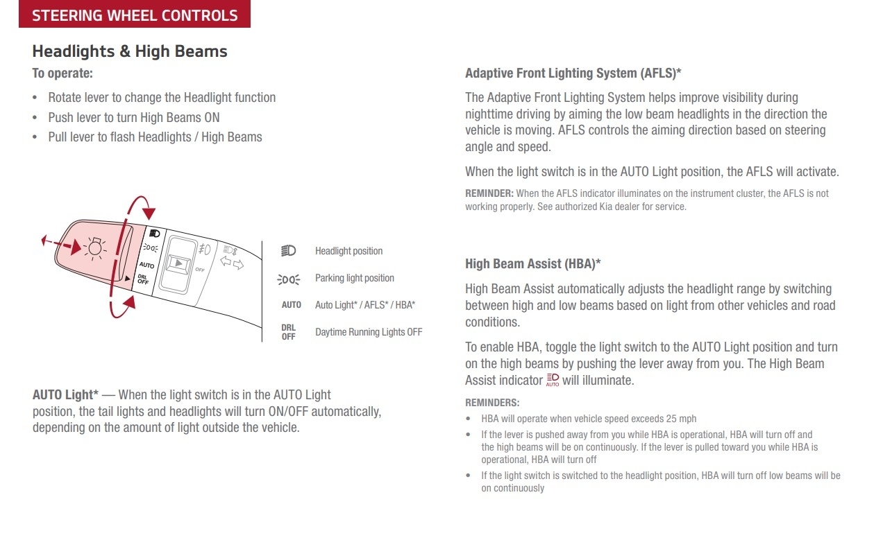 The light switch will be in the normal position and it won't happen for a week or two and then all of a sudden it will happen. No noticeable pattern. The alternator has been checked. It has a new battery. The multifunction light switch was replaced but then it happened again, so they replaced the switch again a week ago, and so far it hasn't happened yet. But after the first time it was replaced, it took a couple of weeks. Almost like a loose connection or something, but they say everything has been checked. And it's a 2008 Kia, not a 2018.