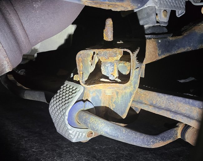 It is the driver side and so the new bolt whenever i find it won't have anything to hold on to. I'll need to weld new steel and pretty much just refab the structure, brutal.