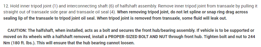 When you reconnect the lower ball joint, before you install the axle nut, you should be able to push the outer joint inward toward the transmission a good 3/4" with heavy thumb pressure. It should pop back out under spring pressure. If it does not, be sure the inner joint is fully seated in the transmission.