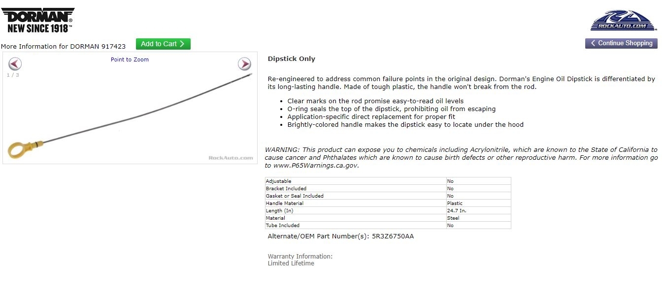 I have a broken plastic metal oil dipstick and I would like to find an all metal oil dipstick for my vehicle listed above that will not cost an arm and leg.