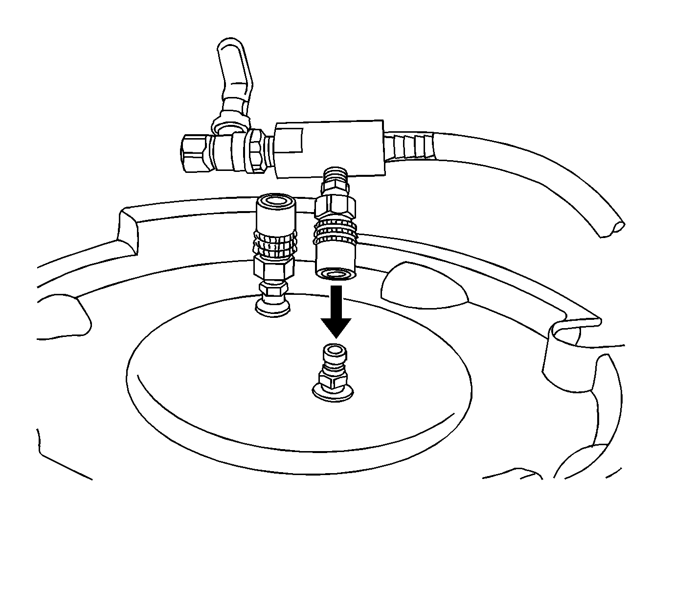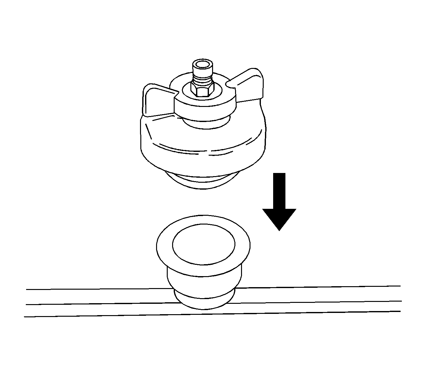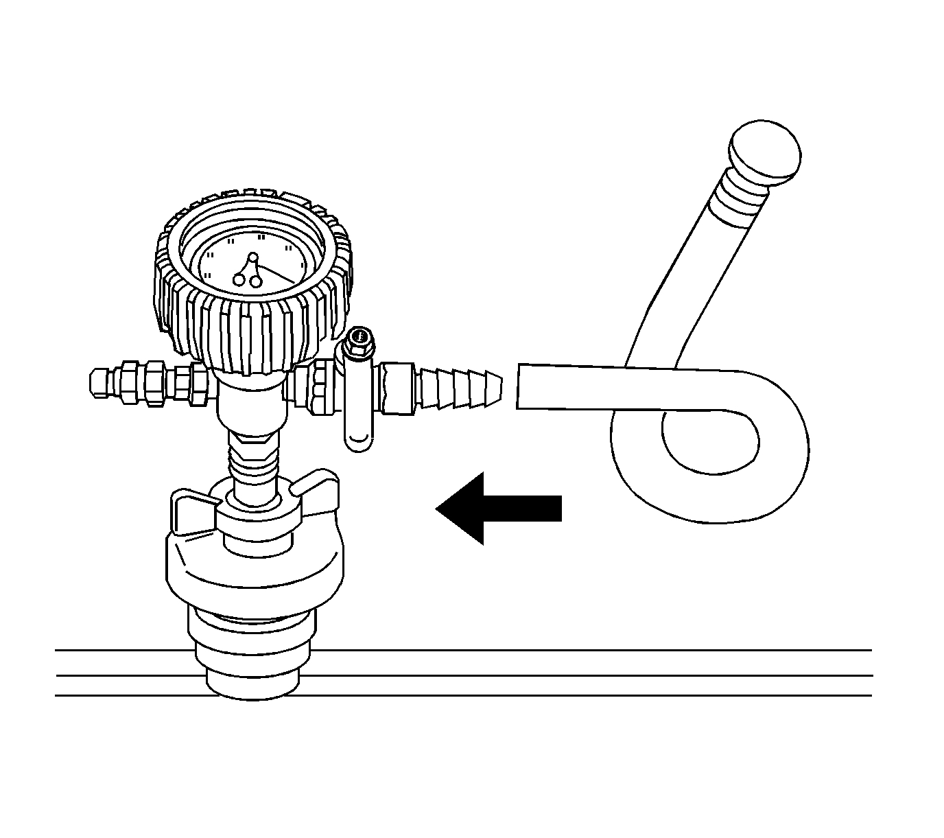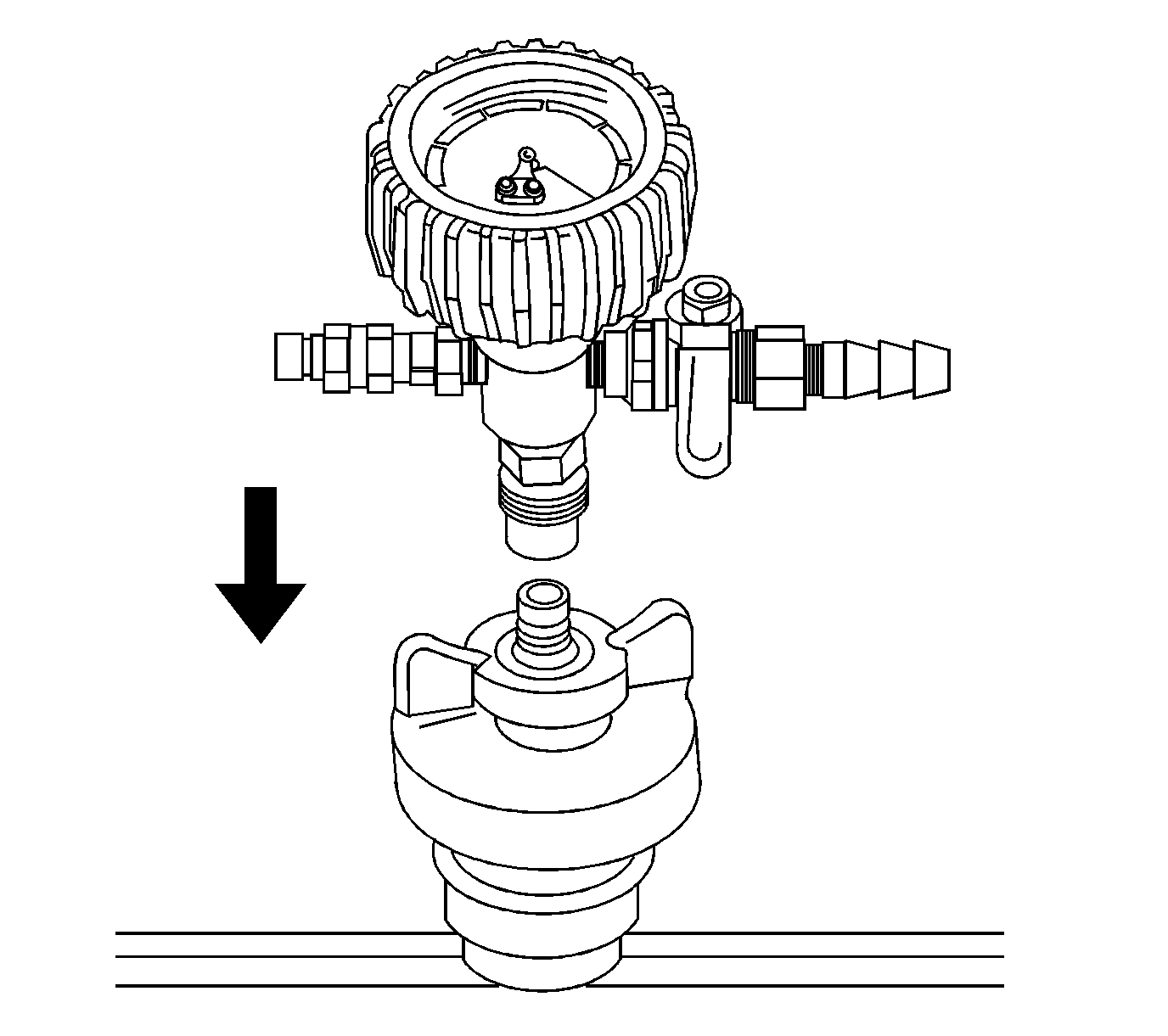 1. Install GE-42401-2 - Radiator Cap and Surge Tank Test Adapter into the surge tank fill neck.