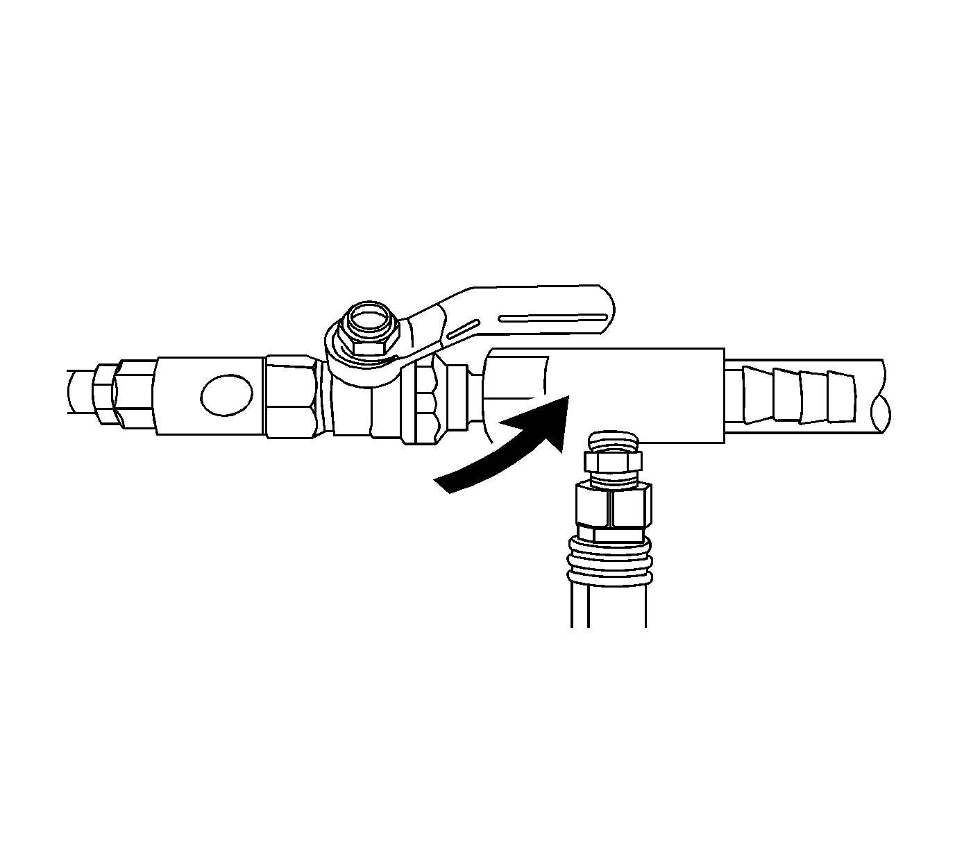 16. Slowly open the valve on the vacuum gauge assembly. When the coolant reaches the top of the fill hose, close the valve. This will eliminate air from the fill hose.