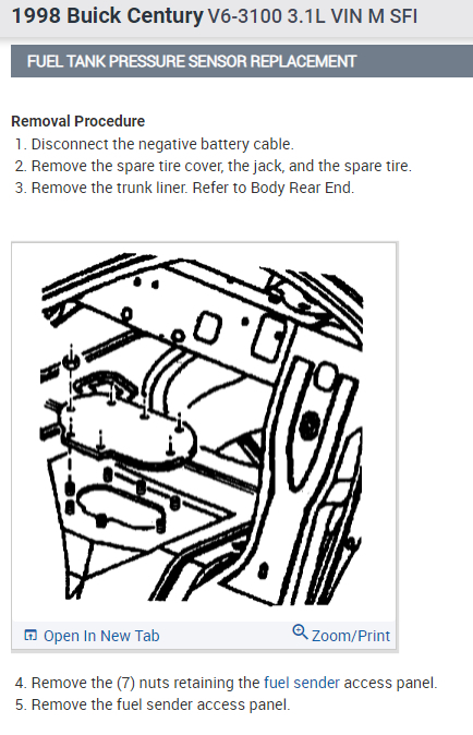 The fuel tank pressure sensor is located on top of the fuel pump sending unit (see diagram).