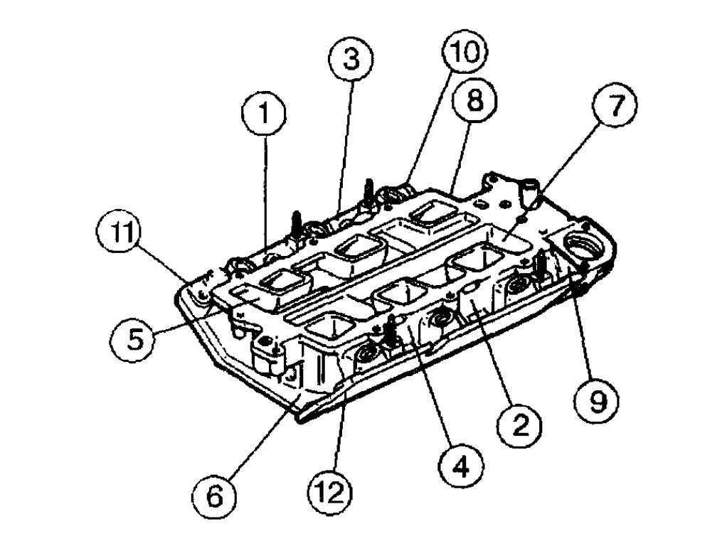 ^ Tighten the lower intake manifold bolts in sequence (1-12) to 15 Nm (11 ft. lbs.).