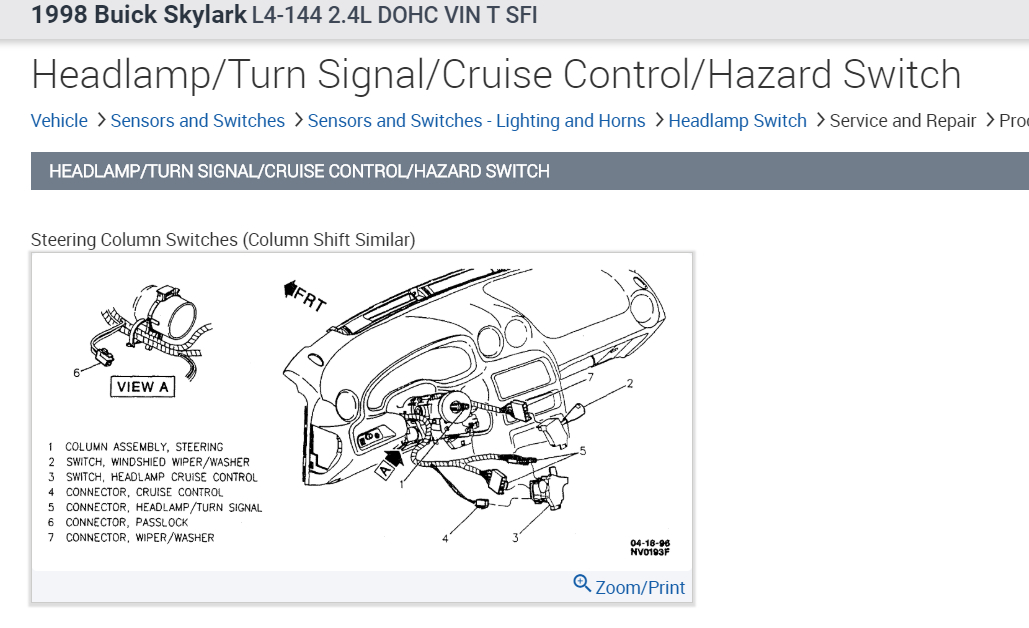 The headlamp switch on my Skylark quit working yesterday. Fortunately this happened when I turned the headlights off, but now I need to replace it. Is this a fairly simple job? If so, can you tell me how to make this repair? I have looked in the Chilton manual but it shows the switch on the steering column. The switch in my car is on the left side of the instrument panel.
