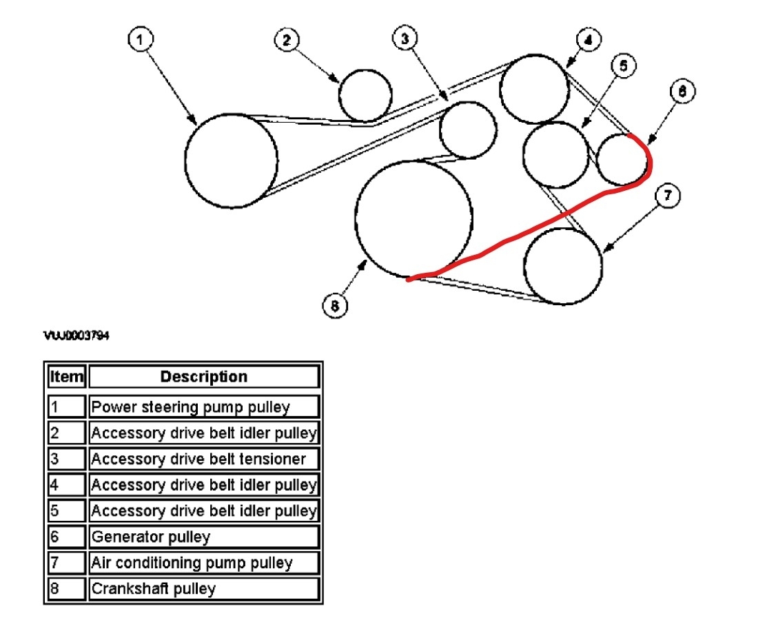 You might be able to do that if you use a shorter belt and bypass the AC and the larger idler. As for the size, not really able to say as you would need the exact length that your are bypassing and subtract that from the current belt, then add in the length of the new belt location. To get a close number you could use a flexible tape and measure the path without the idler and AC. You will also need to look at the actual routing to make sure that the different run will clear the other items. What is the reason for the bypass?