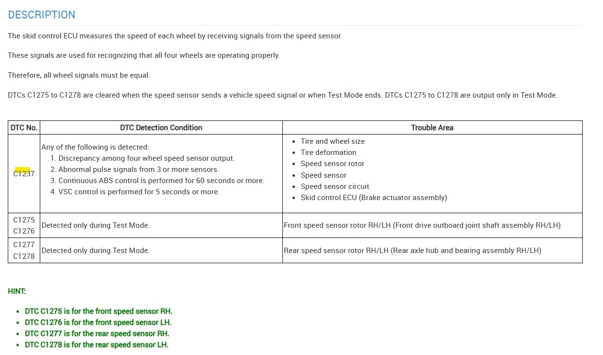 So after I rotated my tires my car started malfunctioning. Somehow jacking it up triggered it. When I drove it after I was done with the tire rotation my traction control would kick in at approximately 20 mph and would be in low power mode. If I manually turned off traction control it would drive normally but would turn back on if I would come to a complete stop and go again. It’s not showing a check engine light either. I hooked up a scanner tool and got a c1237 error code. Says Speed sensor rotor faulty.