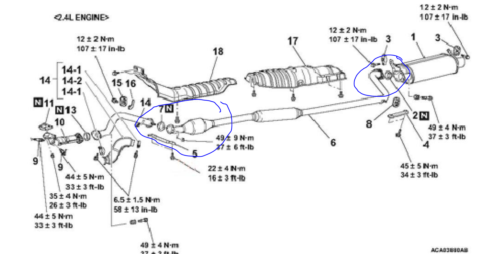 I also attached the procedure for the warm up converter as well. Jut remove the clamps I circled and it is part of the main exhaust pipe.