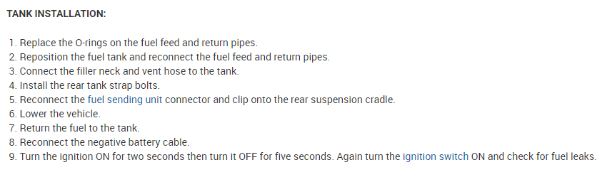 If The relay turns out to not be the problem here are instructions on how to replace the in-tank electric fuel pump which is mounted inside the fuel tank. Here is a tutorial showing how to replace an in-tank electric fuel pump: