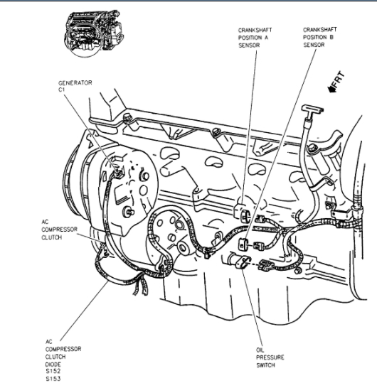Crankshaft Position (CKP) Sensor A Center front of the engine, near the base of the engine oil level switch Crankshaft Position (CKP) Sensor B Center front of the engine, near the base of the engine oil level switch