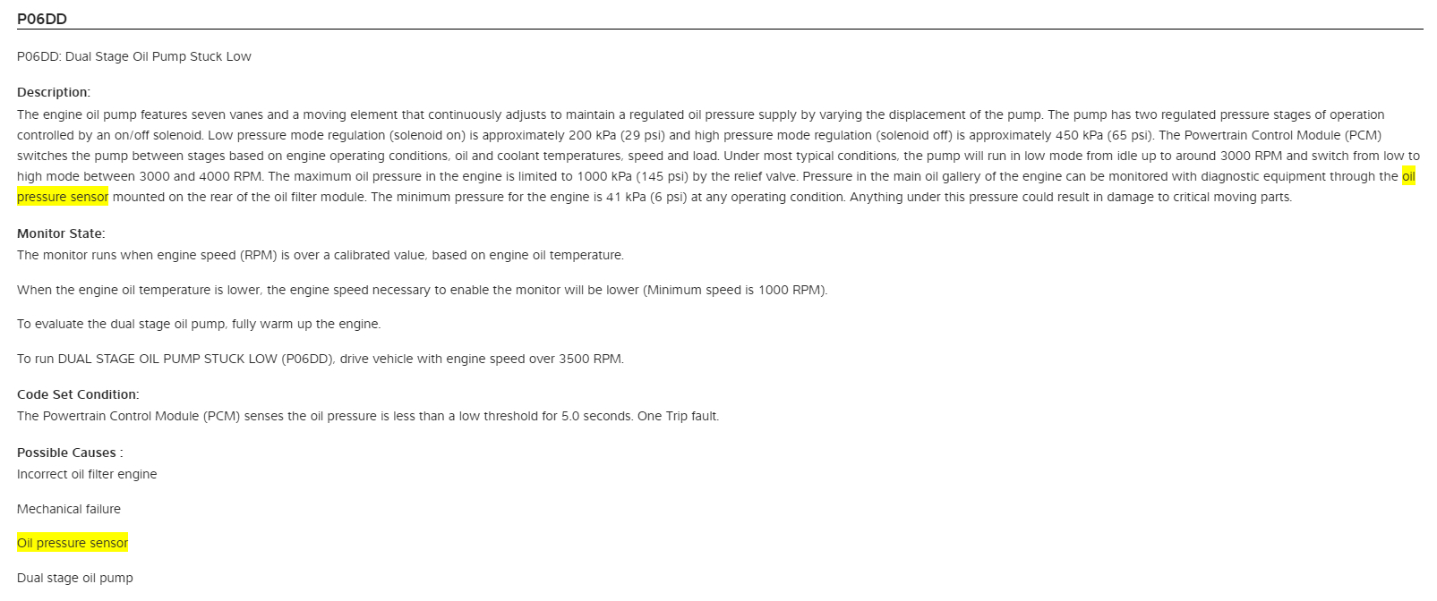 The 4 diagram has a list of all the possible reasons for the code, Replacing the pressure sensor being at the top of the list. Just by this list it looks like even slight oil leaks can trigger this code.