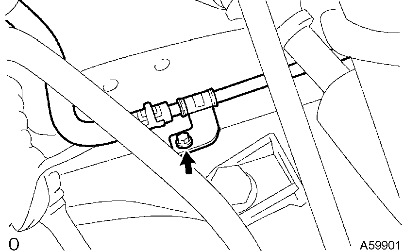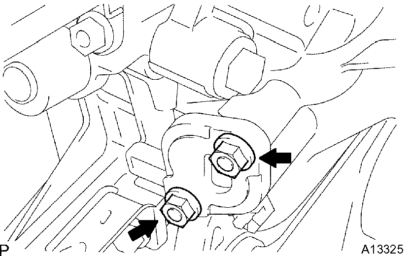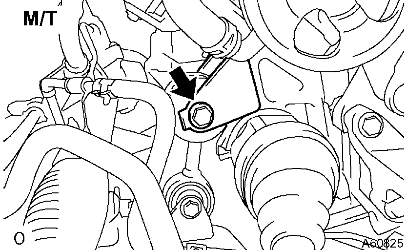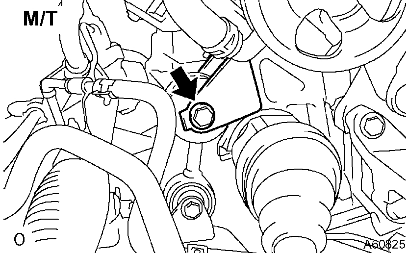 c) M/T: Remove the bolt and disconnect the engine lateral control rod.