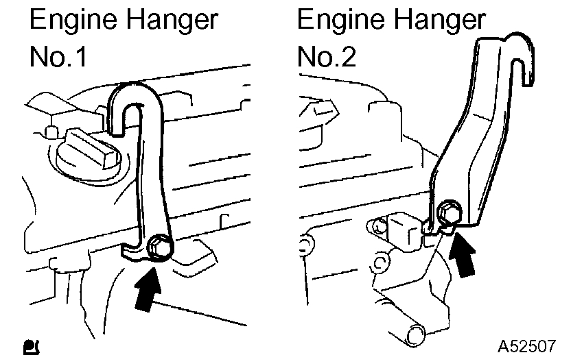 a) Install the engine hanger No. 1 and No. 2 with the bolts as shown in the illustration.