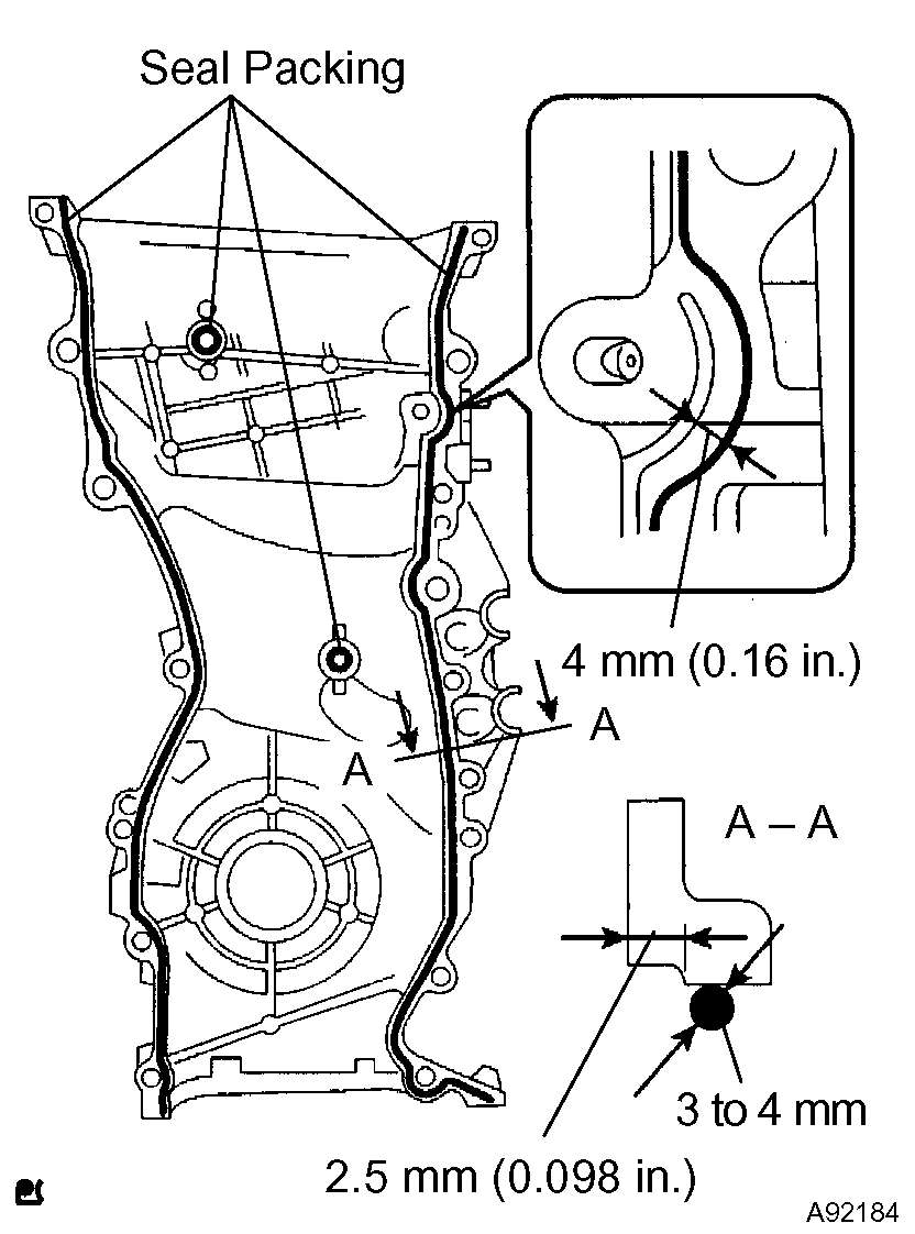 c) Apply seal packing in a continuous bead (diameter: 3 to 4 mm (0.12 to 0.16 inch)) as shown in the illustration.