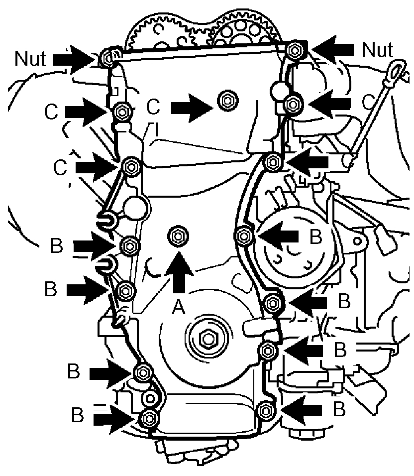 d) Install the timing chain cover with the 14 bolts and 2 nuts.