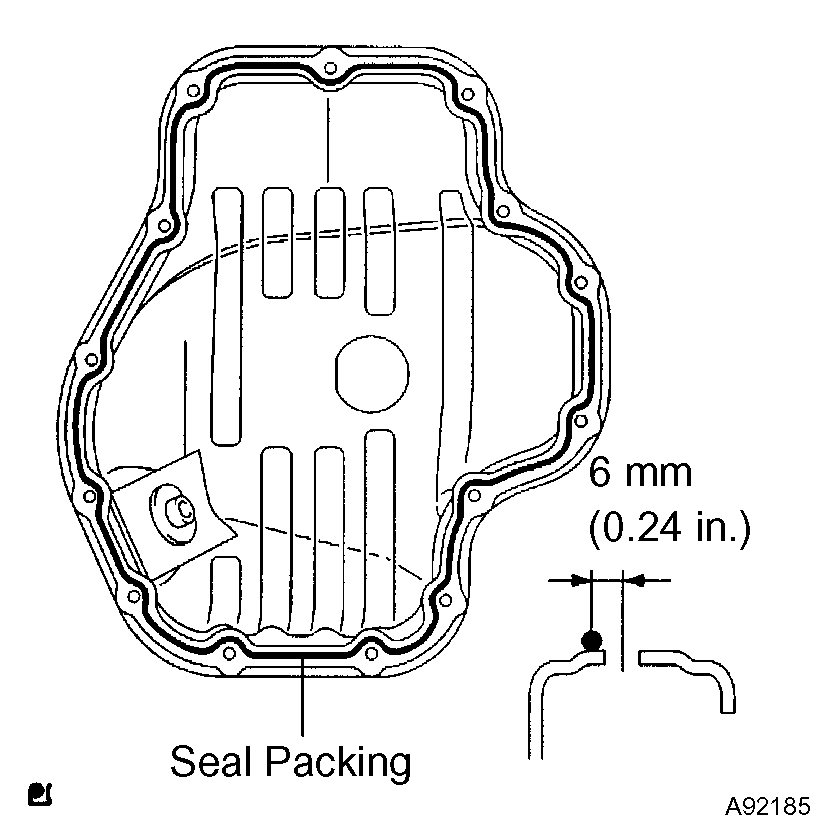 ^ Install the oil pan within 3 minutes after applying seal packing.