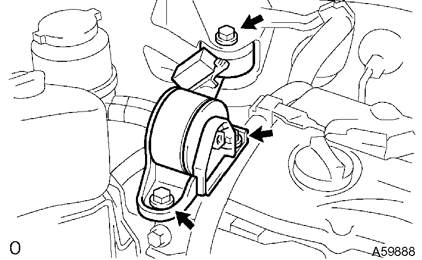 a) Remove the 3 bolts and engine mounting bracket.