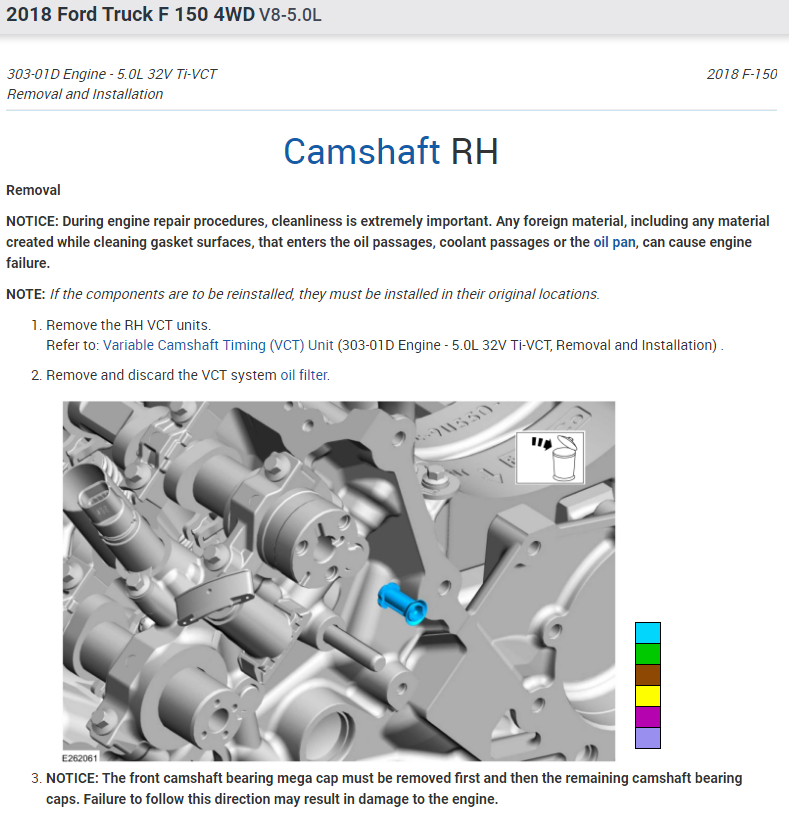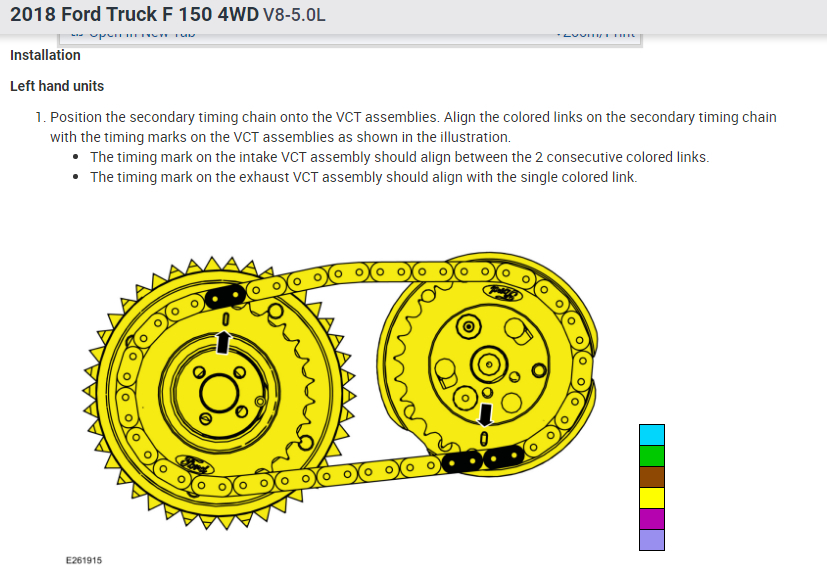 Need a diagram and procedure on how to install the cams and VCT timing chains as well with the main timing chains on the truck listed above. i bought a short block and I'm going to assemble it.
