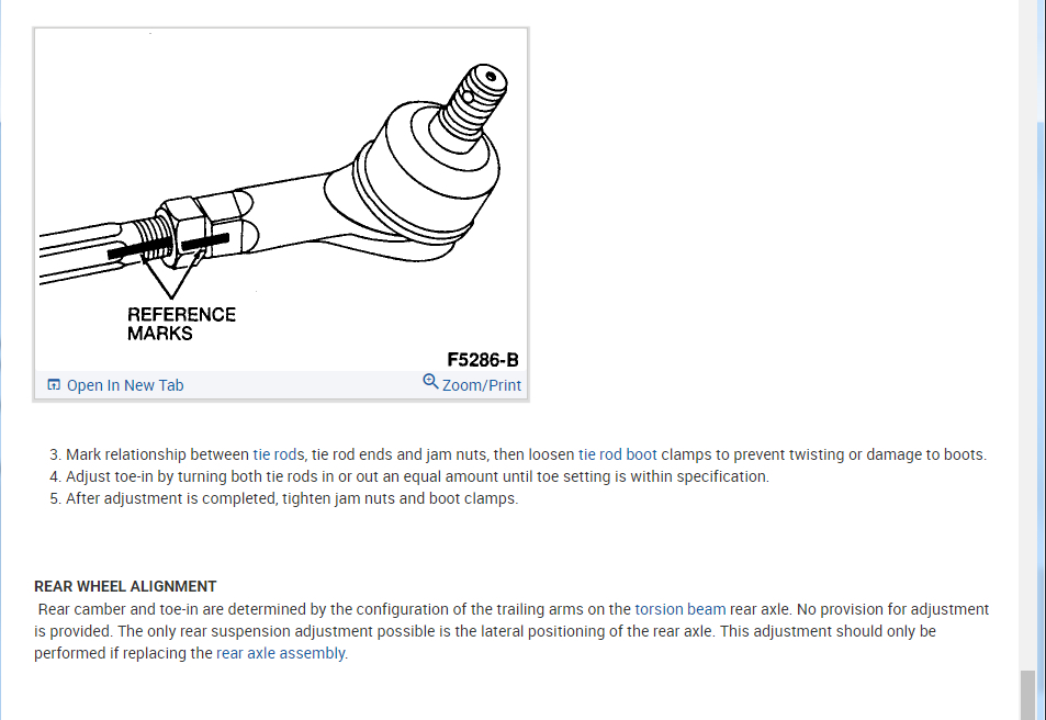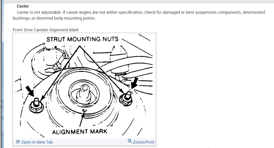 1.But how do I know where the original marks were? I don't see them on the strut mount brackets. How do I know what direction to rotate the brackets to correct the camber misalignment (it says "rotate it by 180 degrees")? But when looking at the camber diagram for this car, I feel that the setting if still in the original position then it maybe at its extreme 1/2 degree positive camber and turning the mount bracket by 180 degrees to the left will give the tire an inner edge wear instead. I don't feel confident as to how to proceed here? The problem was compounded when an alignment mechanic looked at the rear beam visually, and told me "that needs replacement." He didn't speak much English, but I think he was pointing towards the rear axle beam. I didn't notice problem with the rear tires. But anyway, I can't find rear wheel axle beam anywhere online or at any of the auto parts stores. But when I searched for Kia or Mazda parts of the same, I got the part I am looking for (visually). I am not certain how (and where) to order the ford aspire part though.