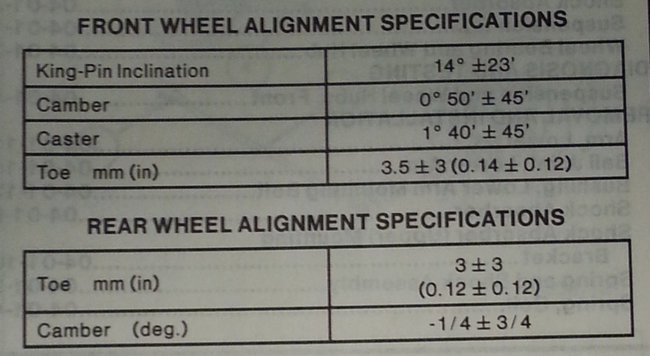 Before me noticing any misalignment or tire wear problems, I had planned to overhaul the front wheel-brake-suspension system. In fact, I just received the parts, but I am hesitant to proceed with this now even though replacing the front suspensions may take care of the problem. So, I am trying to understand and diagnose it before I replaced anything. I think this is most likely Camber misalignment. The wear is all around the outer edge of the tires (the front ones). After rotating the tires, the front ones that were in the rear developed the same exact wear in a matter of one week. I know the camber on this car is 1/2 degree increase or decrease.