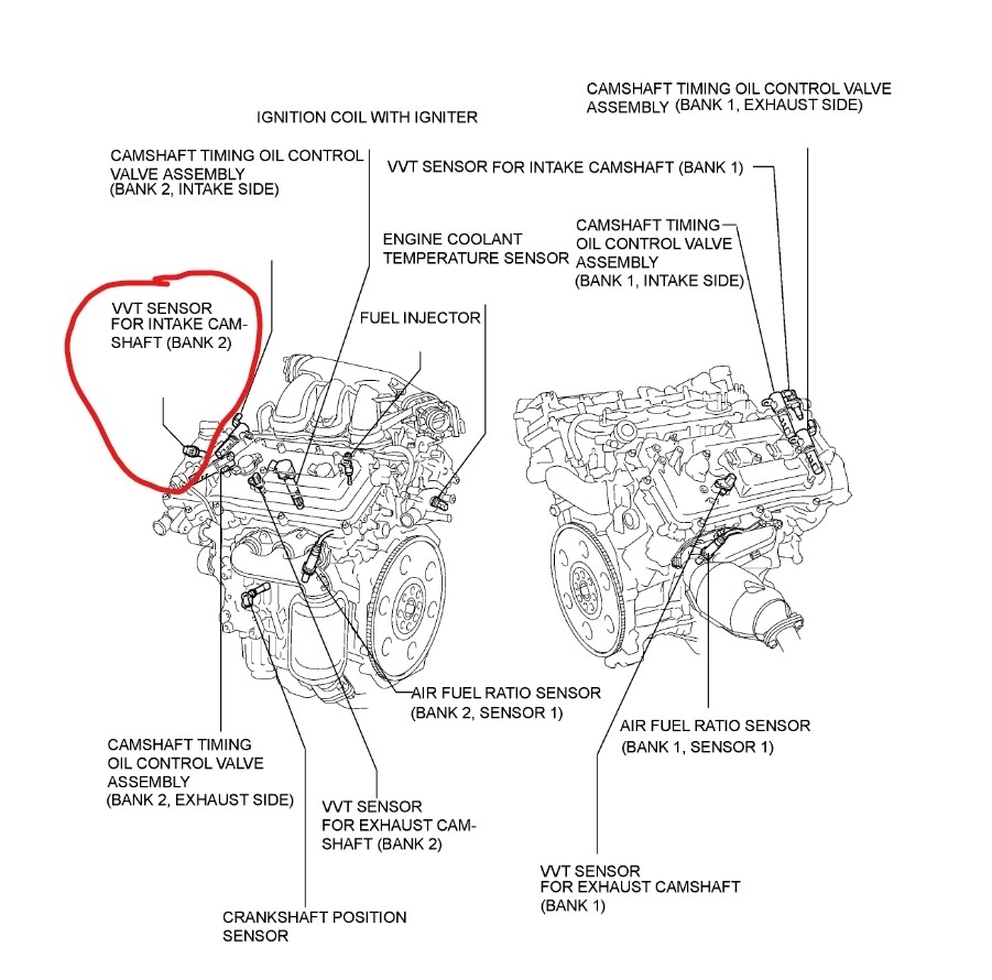 There are a total of 4 camshaft sensors (VVT sensors in Toyota speak) However the code you have show as Camshaft Position Sensor "A" Circuit (Bank 2) Which translates to Bank 2 intake camshaft sensor is showing a fault. The sensor you are looking for is right next to the oil fill on the valve cover. First check the wiring close, if it's damaged it can set the same code. The sensor has a single bolt. When you install the replacement just snug it down good. The spec if 7 lb ft but it isn't critical.