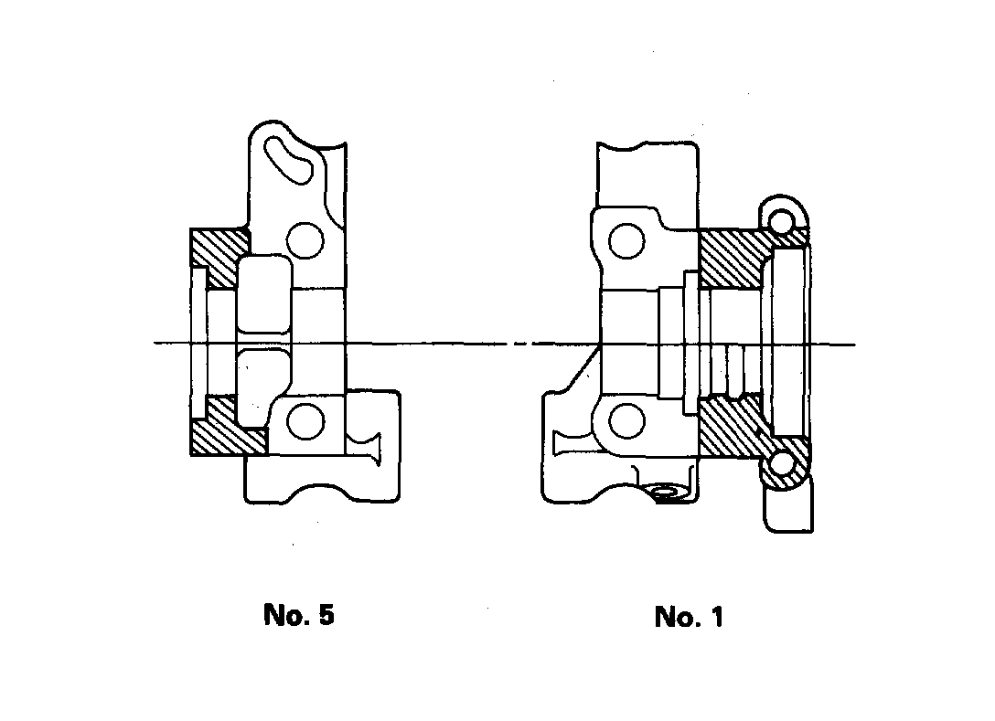 2. Apply liquid gasket to the head mating surfaces of the No. 1 and the No. 5 camshaft holders. Apply liquid gasket to the shaded areas.
