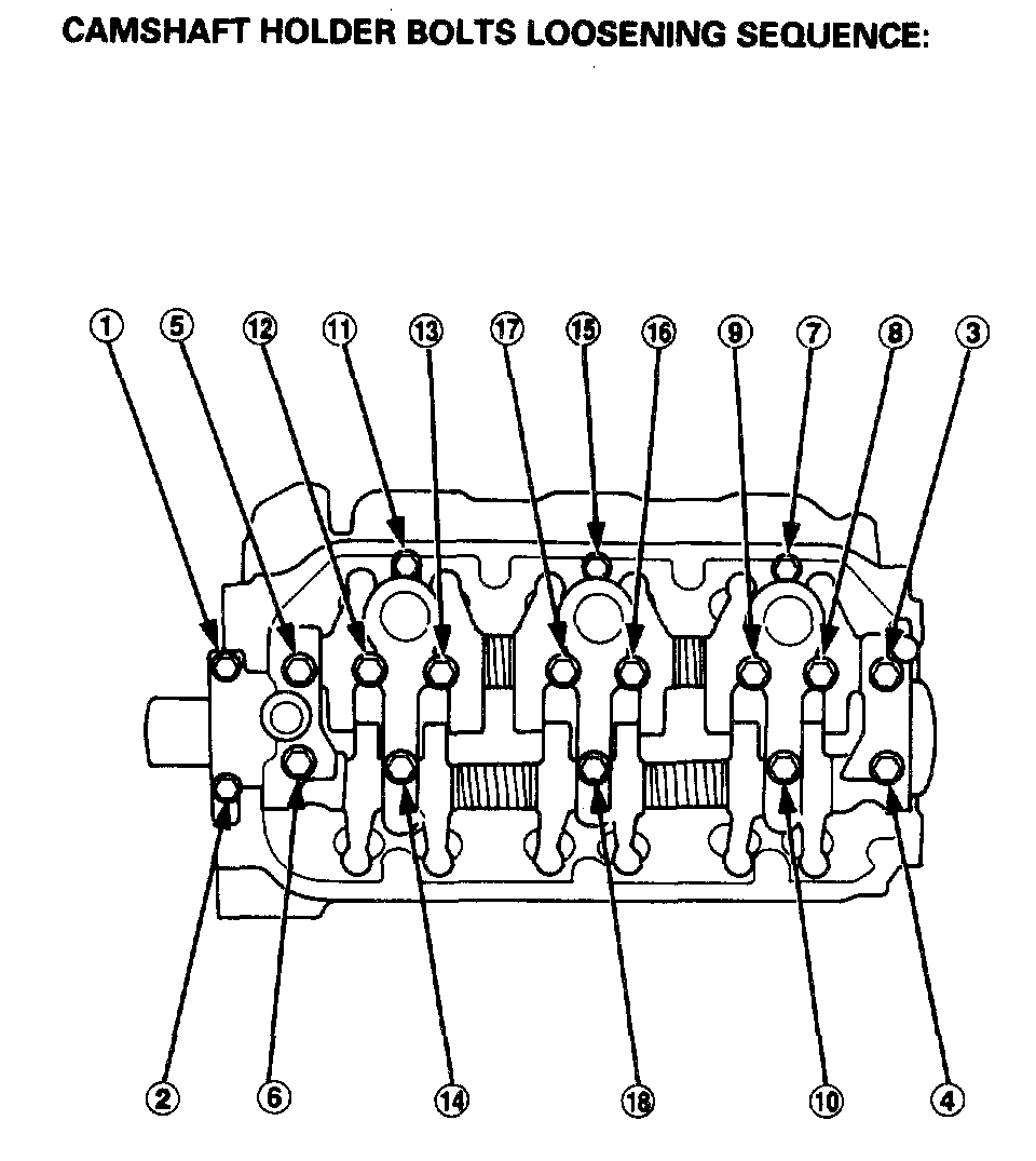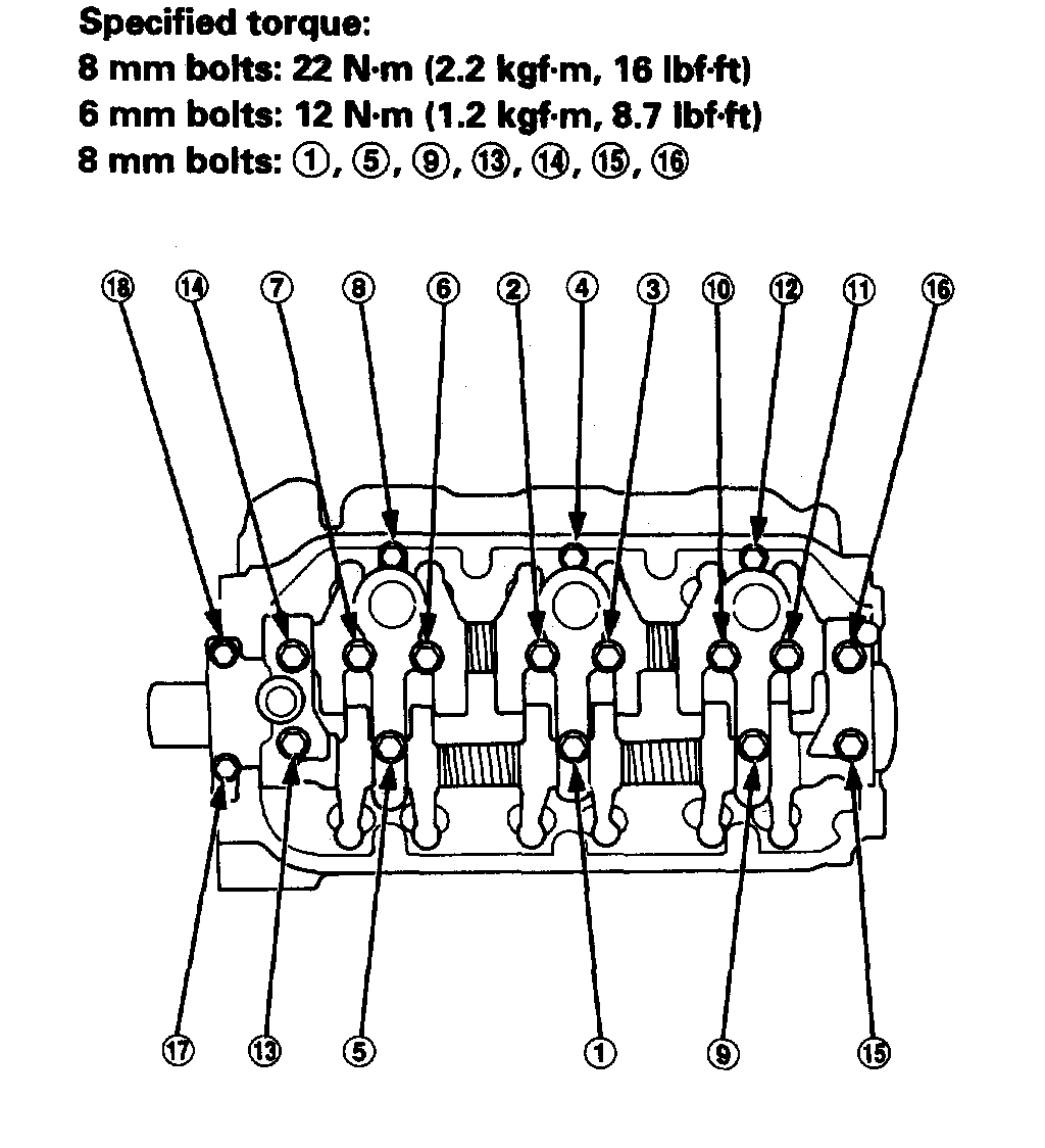 3. Tighten each bolt 2 turns at a time in the sequence to ensure that the rockers do not bind on the valves.