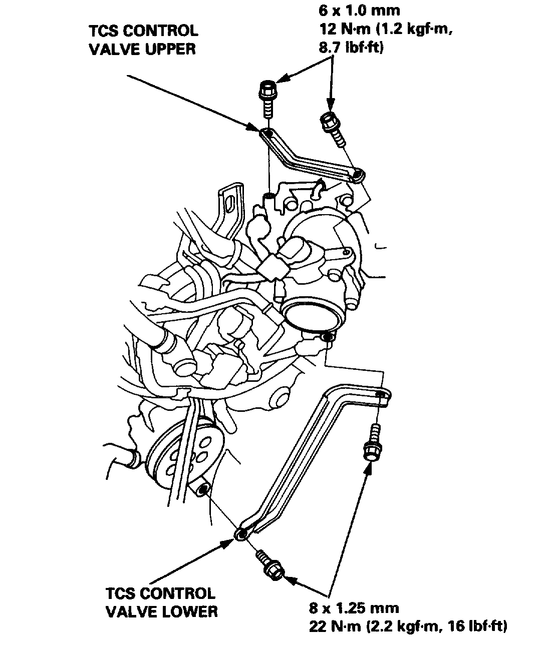 5. Remove the TCS control valve upper and lower