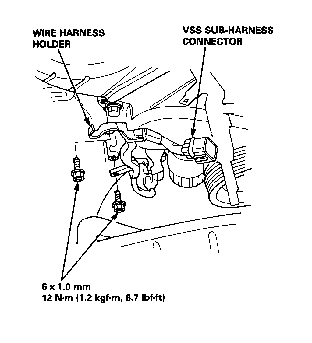 8. Disconnect the vehicle speed sensor (VSS) sub-harness connector, then remove the wire harness holder.
