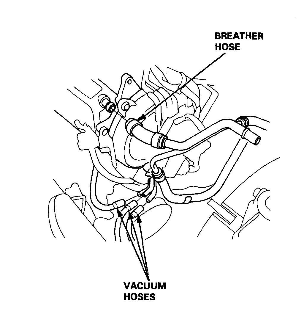 9. Remove the breather hose and vacuum hoses.